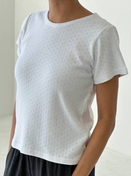 Made in South Korea The dyeing and washing process gives each garment unique character. Please allow for slight color and fit variation for each garment. 100% Cotton Pointelle jersey Due to the nature of pigment dye, loose pigments may remain on the surface of the garments. -Do not spot clean -Washing these garments only with like colors and in cold water -Hang Dry Approximate Measurements: Length: 20 1/2"(S),21"(M), 21 1/2"(L) Chest : 16"(S), 17"(M), 18"(L) Model is 5' 6", Bust: 34", Waist: 27", Hip:36" and wearing a size Small