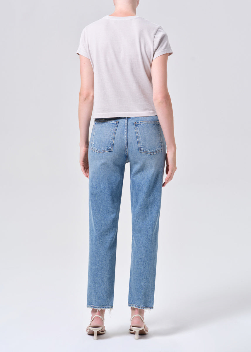 The 90’s Pinch Waist Crop offers a fresh, lived-in take on a timeless silhouette. Designed in a light worn-in indigo wash, this high-rise straight-leg style features a cropped 27.5-inch inseam that feels effortless and flattering. Crafted from soft, breathable regenerative cotton denim with light stretch for natural movement, it delivers a comfortable worn-in feel from day one while maintaining a clean, refined look.