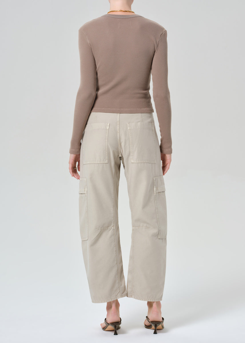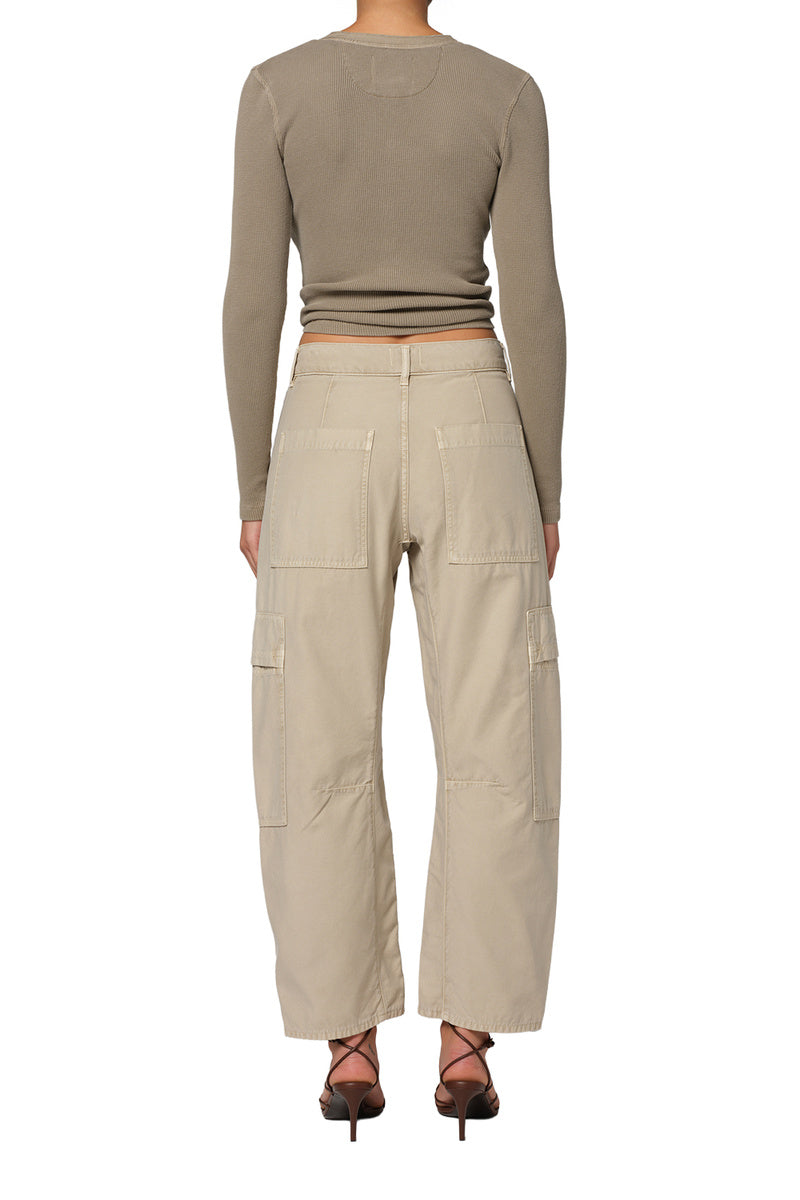 The Marcelle Cargo features a relaxed straight leg that subtly tapers at the ankle, pairing ease with structure. Designed with classic cargo-inspired detailing, it’s crafted from midweight, rigid twill that holds its shape while softening beautifully over time. Effortless and versatile—an elevated take on a utilitarian staple.