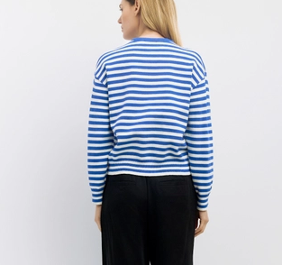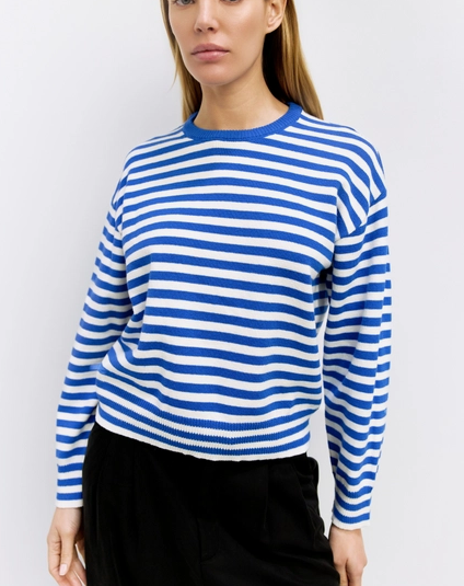 The Kinsley Sweater pairs a relaxed silhouette with bold striped heavyweight knit, bringing cozy texture and effortless style to a classic crewneck design.