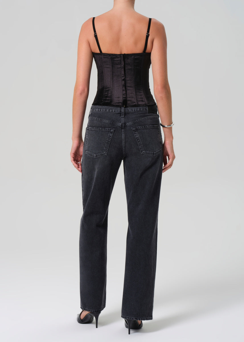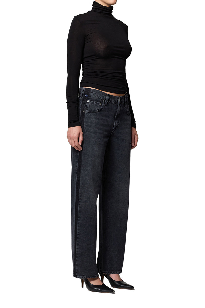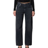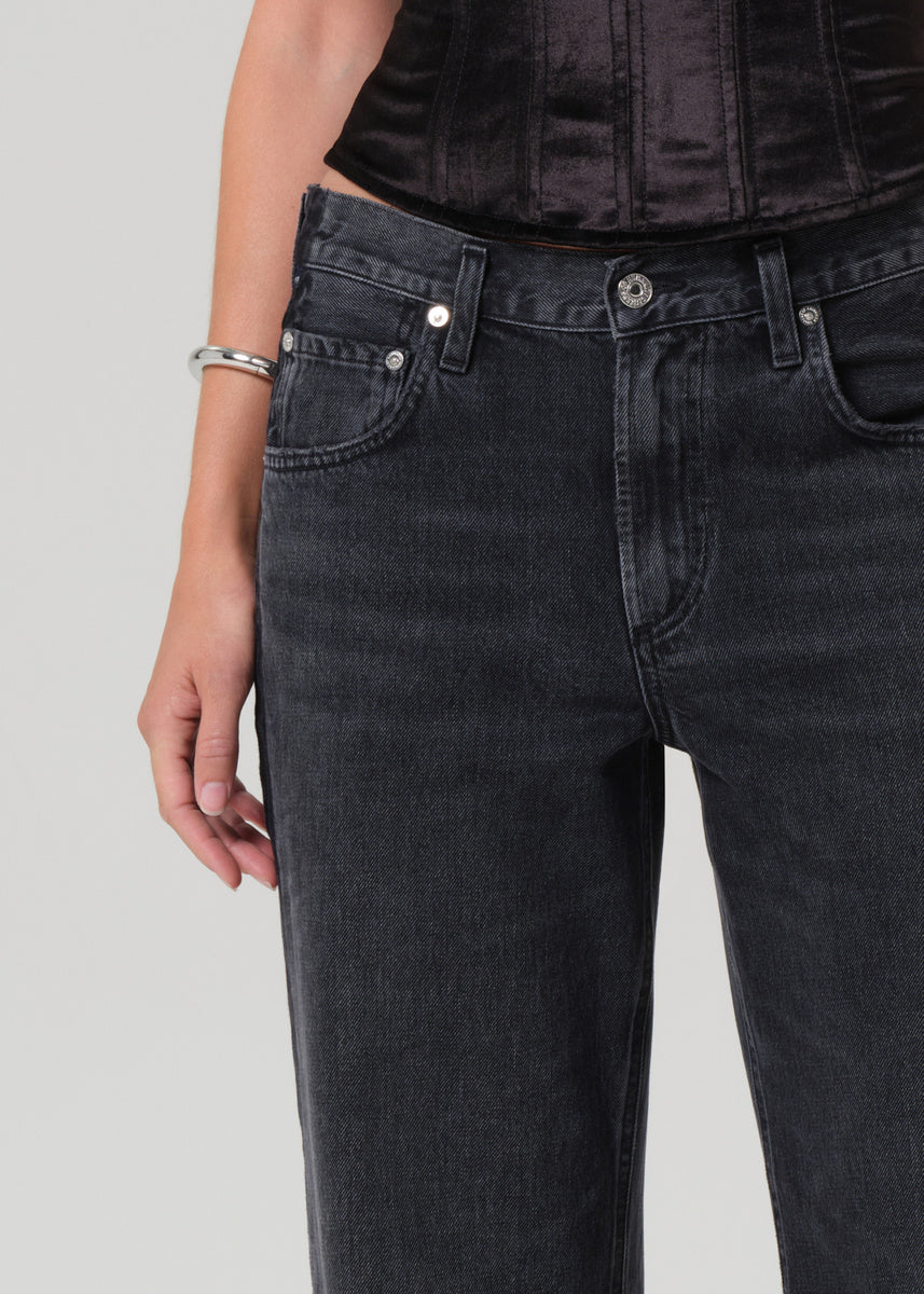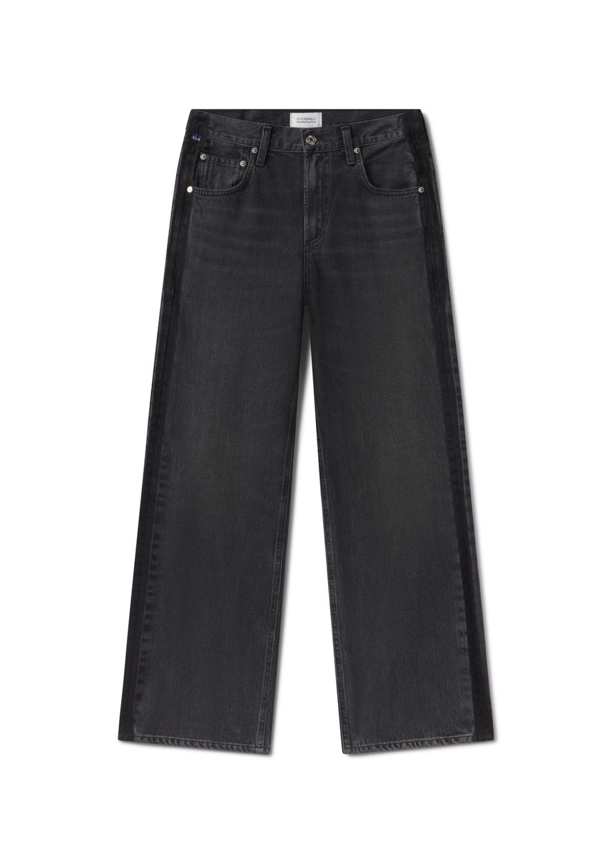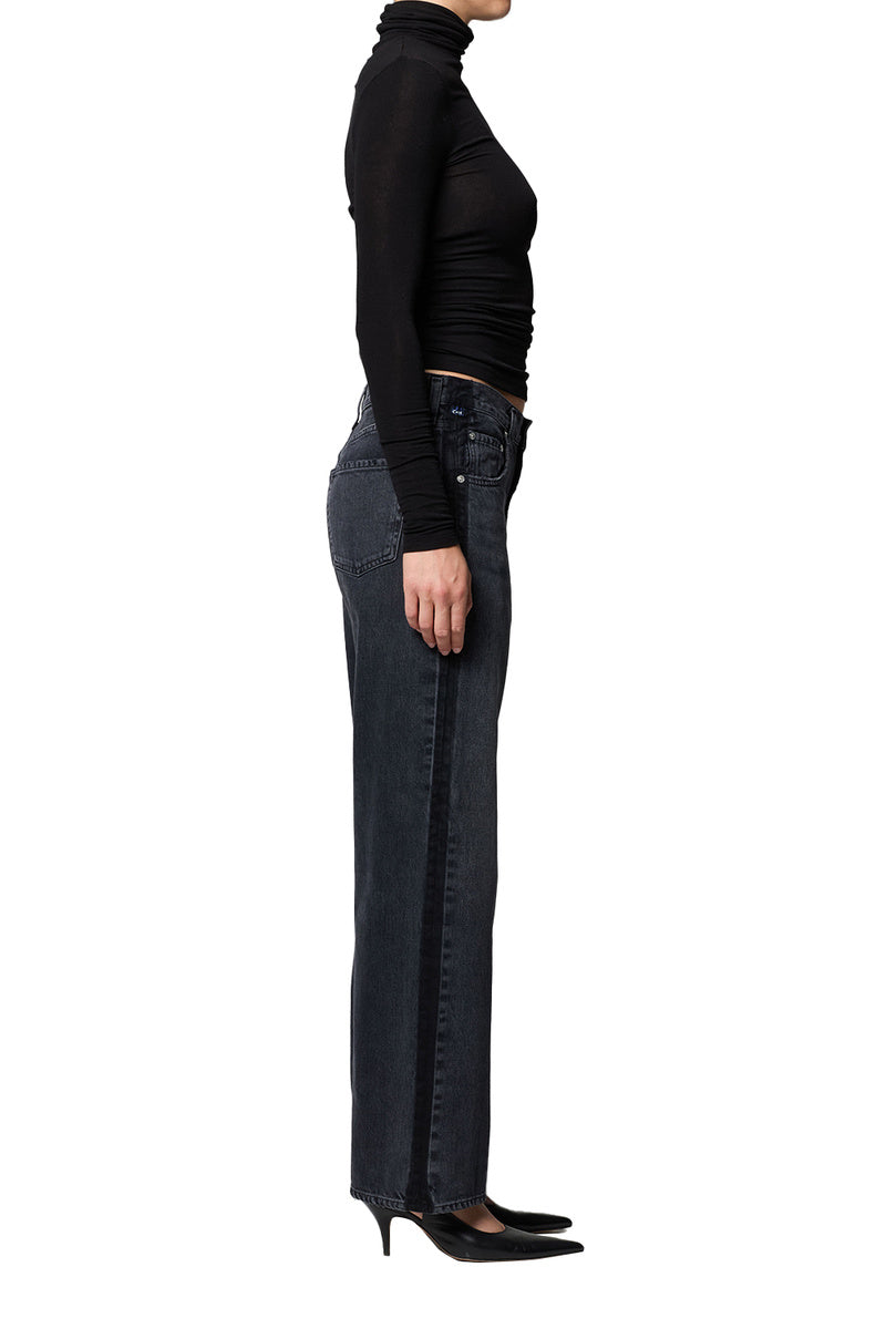 The Lindz Easy Straight is crafted from rigid, non-stretch denim with a soft hand for all-day wearability. The washed-out black silhouette features a sleek black tuxedo stripe and subtle whiskering for a modern, polished touch. Its relaxed straight fit sits low on the waist and falls to a full-length finish, perfect paired with tees or tailored tops for versatile styling.