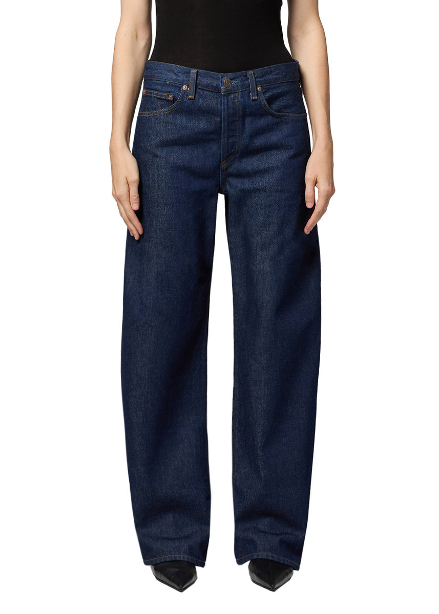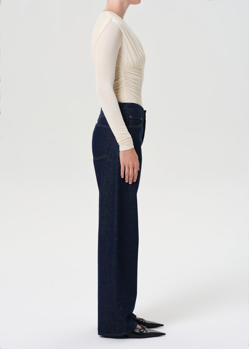 The Arc Jean 32" is a wide-leg pant crafted from rigid, non-stretch regenerative cotton denim with a soft hand for all-day wear. Featuring a dark, deep rinsed indigo wash, it offers a relaxed yet structured silhouette that’s true to size. Perfect for pairing with fitted knits or oversized tops, it brings a modern, effortless edge to any wardrobe.