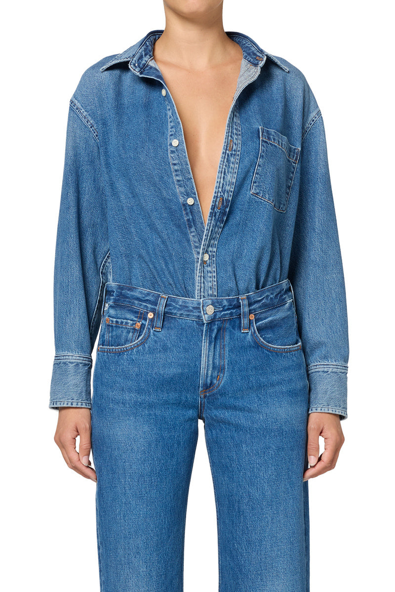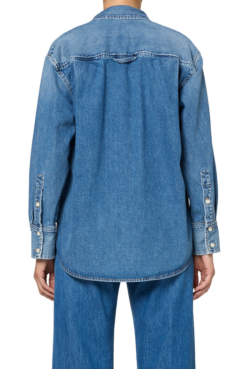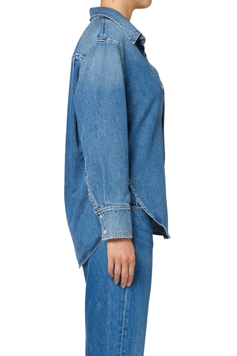 The Carter Shirt is a timeless button-up, cut from soft denim shirting with an airy, breathable hand. Designed with a relaxed silhouette and long sleeves, it drapes effortlessly for a laid-back yet polished feel. Wear it tucked, layered, or left loose for versatile everyday styling.