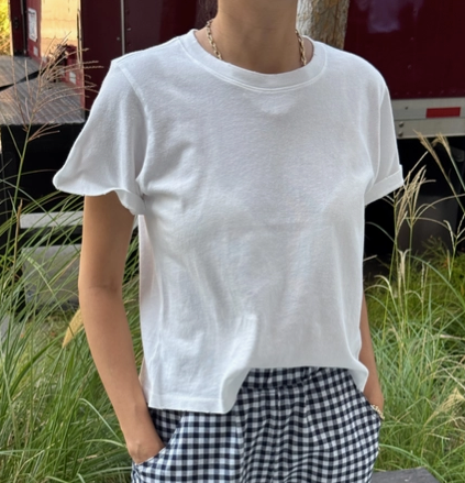 Why We Made This? Meet the Darling Tee — It features a relaxed boxy silhouette that hits the perfect waist length, it offers gently distressed details and a 90's fade for a true vintage allure. Crafted from locally sourced cotton, this tee combines a light, airy feel with a beautifully structured yet soft touch, giving you the vintage feel you long for. We used the softest local 100% cotton* low gauge knit. Garment washed and dyed each tee for a beautiful natural worn-in look. Fabric and garments are made in Made in Los Angeles, USA Content: 100% Cotton Please note: Super soft, dropped shoulder dolman tee with a relaxed fit. The dying and washing process gives each garment unique character. Please allow for slight color and fit variation for each garment.