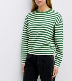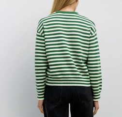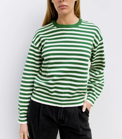 The Kinsley Sweater pairs a relaxed silhouette with bold striped heavyweight knit, bringing cozy texture and effortless style to a classic crewneck design.