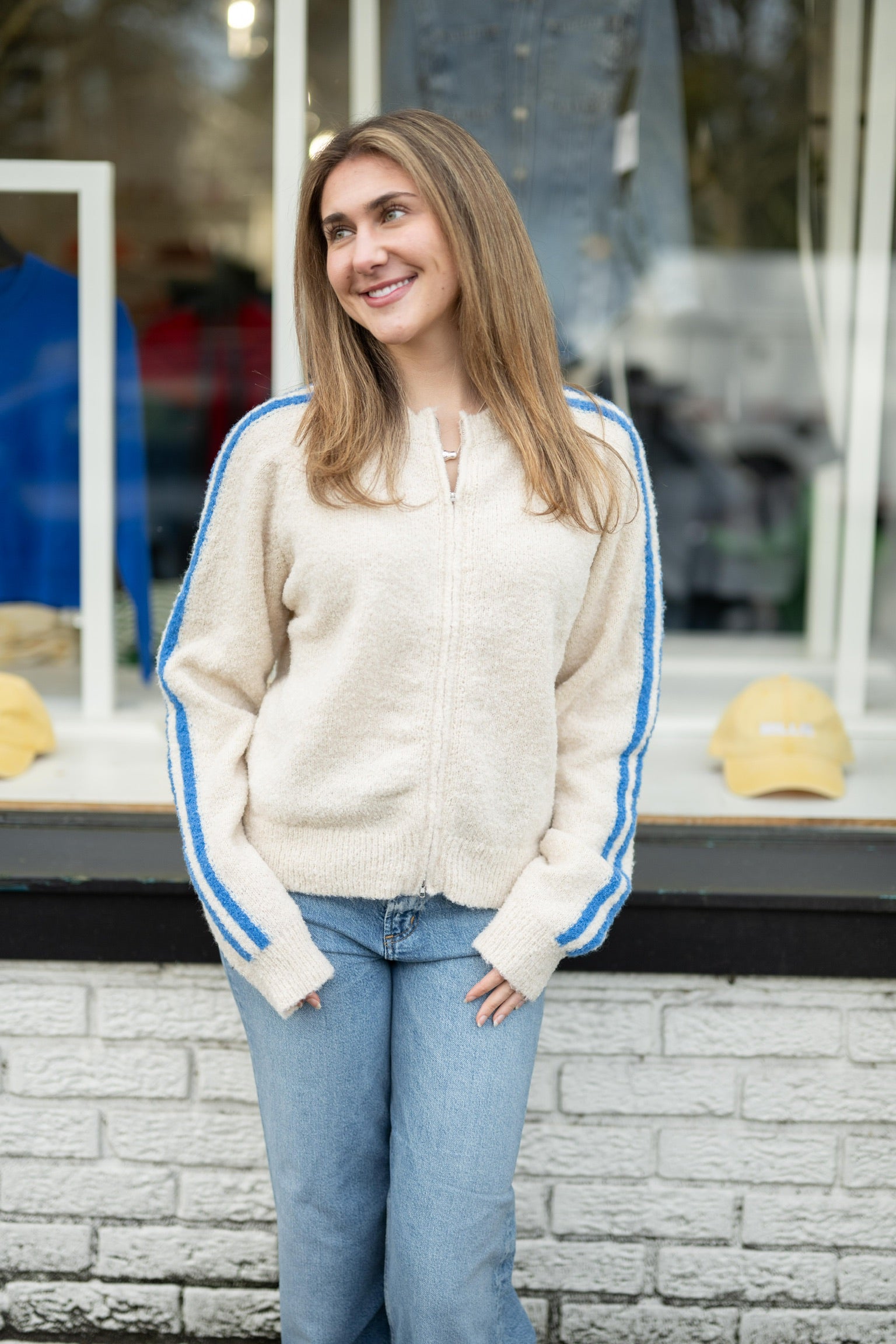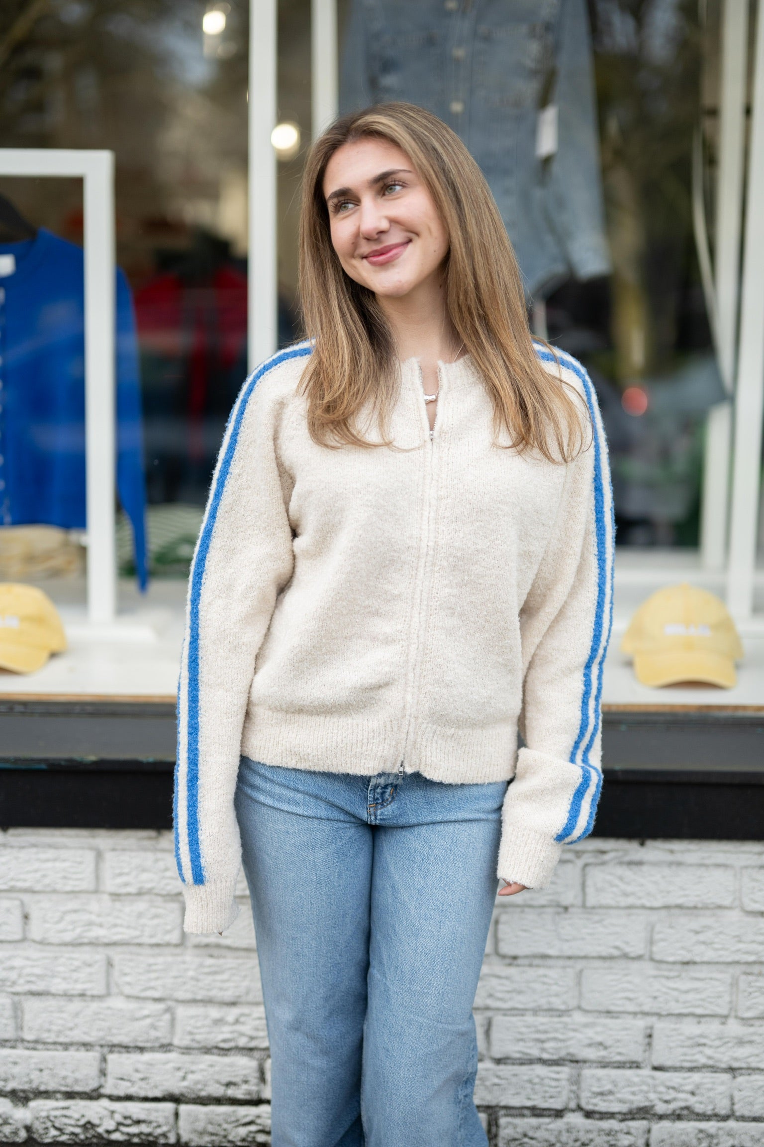 The Reba Sweater | Cream & Blue
