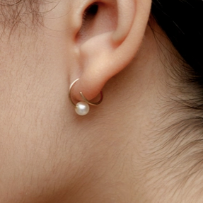 14k gold filled spiral wire earrings with freshwater pearl caps Earrings measure 13mm Pearls may vary in shape and size Sold as a pair Made in Vancouver, Canada.